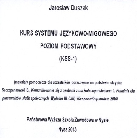 | Inne tytuły: | Kurs Służb Społecznych Kurs systemu językowo-migowego poziom podstawowy 1, |