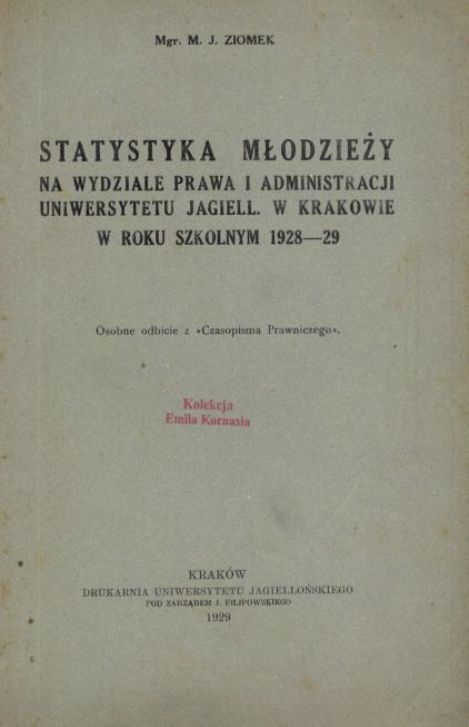 Statystyka młodzieży na Wydziale Prawa i Administracji Uniwersytetu Jagiell. w Krakowie w roku szkolnym 1928-29