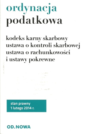 | Inne tytuły: | kodeks karny skarbowy, ustawa o kontroli skarbowej, ustawa o rachunkowości i ustawy pokrewne ustawa o odpowiedzialności majątkowej funkcjonariuszy publicznych, ustawa o odpowiedzialności podmiotów zbiorowych, ustawa o opłacie skarbowej, akty wykonawcze, skorowidz Ordynacja podatkowa i ustawy pokrewne |