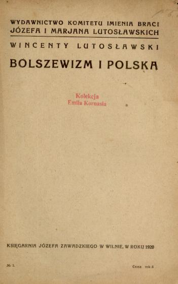| Wydawcy: | Księgarnia Józefa Zawadzkiego (1920) Wydawnictwo Komitetu imienia Braci Józefa i Marjana Lutosławskich (1920) |