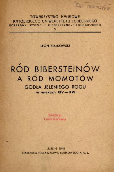 Ród Bibersteinów a ród Mamotów godła jeleniego rogu w wiekach XIV-XVI
