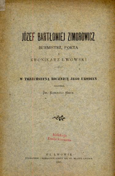 Józef Bartłomiej Zimorowicz, burmistrz, poeta, kronikarz lwowski: