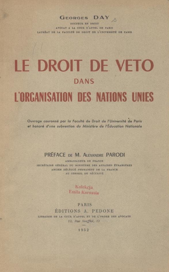 Le Droit de veto dans l'Organisation des Nations Unies