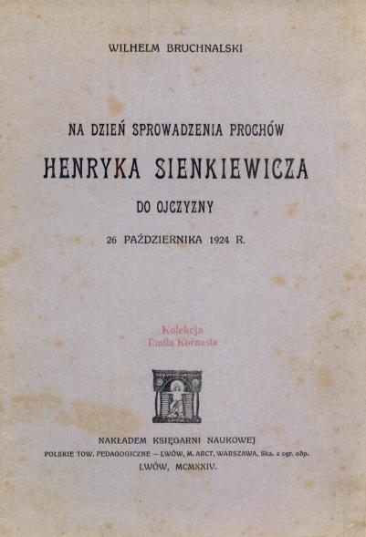 Na dzień sprowadzenia prochów Henryka Sienkiewicza do ojczyzny 26 października 1924 r
