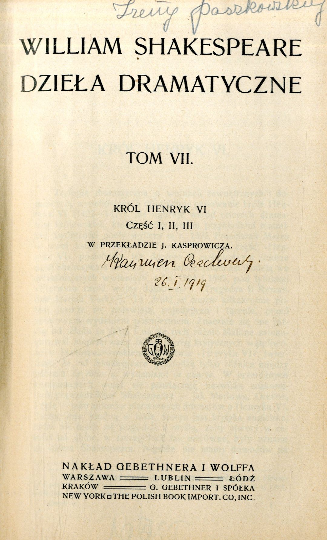 | Inne tytuły: | Dzieła dramatyczne T. 7-8 Król Henryk VI |