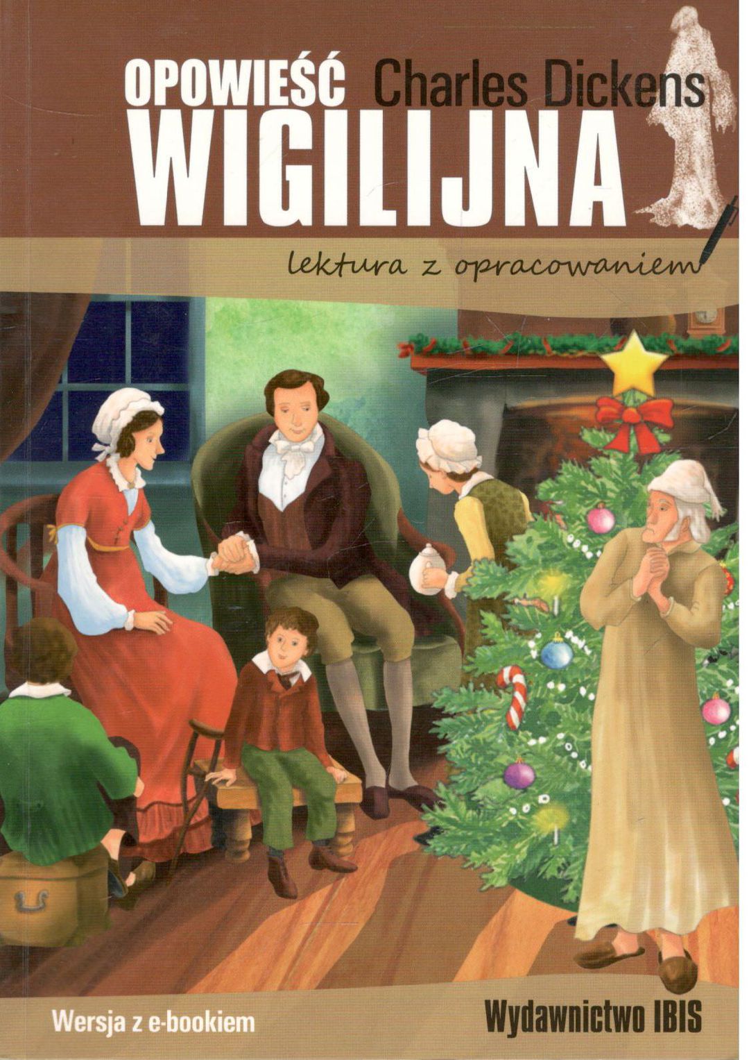 „Opowieść wigilijna” to książka napisana przez Charlesa Dickensa. Czytałem ją w zeszłym roku szkolnym i mi się spodobała. • Głównym bohaterem jest Ebenezer Scrooge. To starszy mężczyzna, który jest bardzo bogaty, ale też bardzo skąpy i niemiły. Nie lubi ludzi, nie lubi świąt, nie wierzy w dobro i myśli tylko o pieniądzach. Wszyscy go omijają, bo nikt nie lubi z nim rozmawiać. • Ale wszystko zmienia się w Wigilię, kiedy odwiedzają go trzy duchy. Pierwszy to duch Przeszłych świąt, który pokazuje mu, jak wyglądało jego życie wcześniej, kiedy był jeszcze młody i szczęśliwy. Drugi to duch teraźniejszych świąt, który pokazuje, jak inni ludzie się cieszą świętując, nawet jak nie mają dużo pieniędzy. A trzeci duch to duch przyszłych świąt, pokazuje mu, co się stanie, jeśli się nie zmieni. Scrooge zobaczył, że umrze samotny i nikt nie będzie po nim płakał. • Po tym wszystkim Scrooge bardzo się zmienia. Rano budzi się zupełnie inny. Zaczyna się uśmiechać, pomaga ludziom, daje pieniądze biednym, odwiedza rodzinę i cieszy się świętami. • W książce oprócz Scrooge’a są też inne postacie, na przykład jego pracownik Bob Cratchit, który mimo że ma mało pieniędzy, jest bardzo dobry i kocha swoją rodzinę. Ta rodzina jest jakby przeciwieństwem Scrooge'a. • Uważam, że „Opowieść wigilijna” to naprawdę fajna książka i warto ją przeczytać, szczególnie tym, którzy lubią święta.