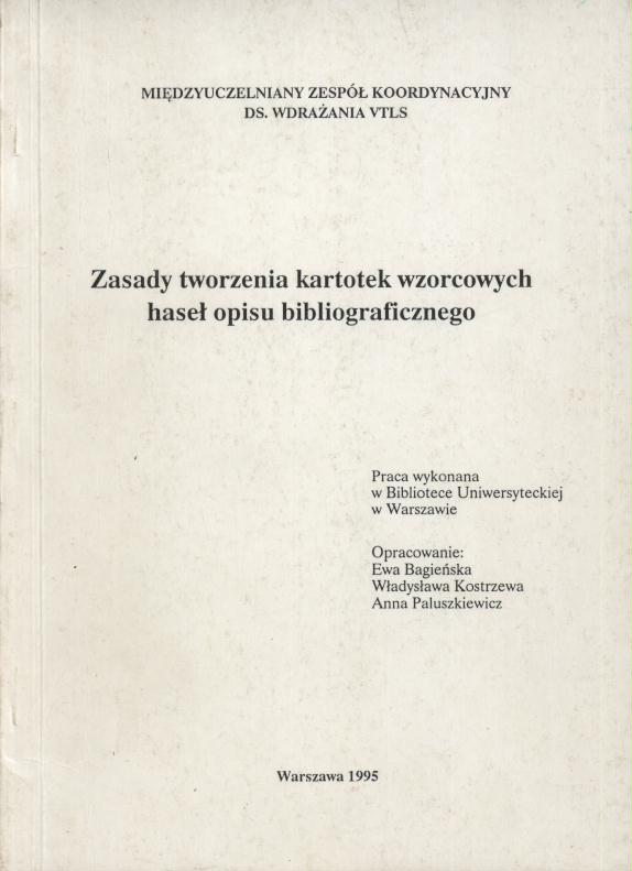 Zasady tworzenia kartotek wzorcowych haseł opisu bibliograficznego