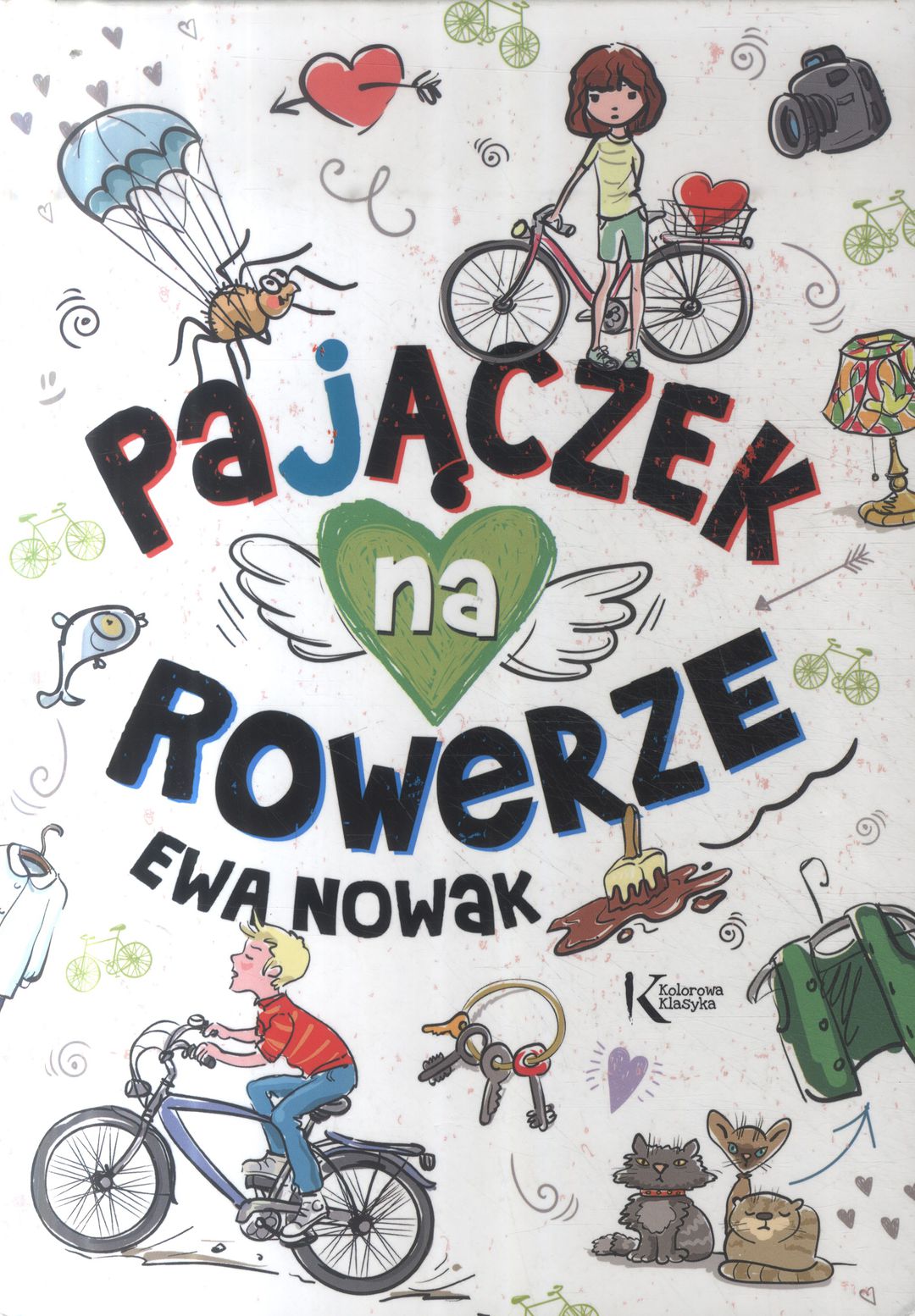 Ola nie przepada za szkołą, nie lubi też, gdy ktoś jej o nauce przypomina, uwielbia za to jeździć na rowerze. Łukasz to zupełne przeciwieństwo Oli, spokojny, uporządkowany chłopiec, którego pasją są pająki. Początkowo, oboje nie przypadają sobie do gustu, ale co zrobić skoro ich mamy to koleżanki ze szkolnych lat i dzieci będą musiały spędzać ze sobą sporo czasu? Mogą się polubić, nie ma innego wyjścia. • Książki Ewy Nowak uwielbiam! Dotychczas czytałam tylko te z serii "Miętowej", dlatego byłam bardzo ciekawa czy autorka poradziła sobie równie dobrze z książką dla dzieci. Otóż poradziła sobie świetnie! Do dzieci już się nie zaliczam, a mimo to lektura mnie pochłonęła. Z zaciekawieniem śledziłam losy Oli i Łukasza. Nie brakowało śmiesznych momentów, ale pojawiły się również wzruszające fragmenty. • Po przeczytaniu tej książki mogę stwierdzić, że nie tylko powieści opisujące miłość nastolatków, czy dorosłych mogą być ciekawe, ale również te, które opisują uczucie dzieci. Jak pokazuje Ewa Nowak nie trzeba mieć naście lat, żeby kochać, można mieć mniej i również darzyć druga osobę miłością. Mimo, że książka skierowana jest do grupy 8-12 lat, to według mnie spodoba się ona również starszym czytelnikom. • Nie spodziewałam się, że książka tak mnie wzruszy. Szczególnie końcówka, która jest napisana po mistrzowsku! Nie brakowało również zabawnych momentów, przy których uśmiech sam pojawiał się na mojej twarzy. • Autorka z każdą przeczytaną książką coraz bardziej mnie zaskakuje. Tym razem stworzyła piękną, niebanalną, pełną miłości i ciepła książkę. Każdy, kto ma ochotę na powrót do dzieciństwa, powinien sięgnąć po "Pajączka na rowerze", myślę, że nie będzie zawiedziony!