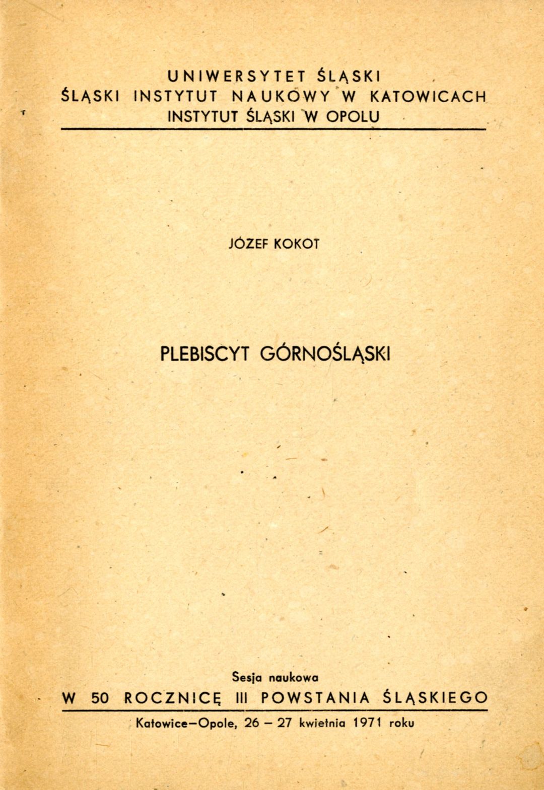 | Wydawcy: | Uniwersytet Śląski - Wydaw (1971) UŚ Opole IŚ (1971) Śląski Instytut Naukowy w Katowicach (1971) |