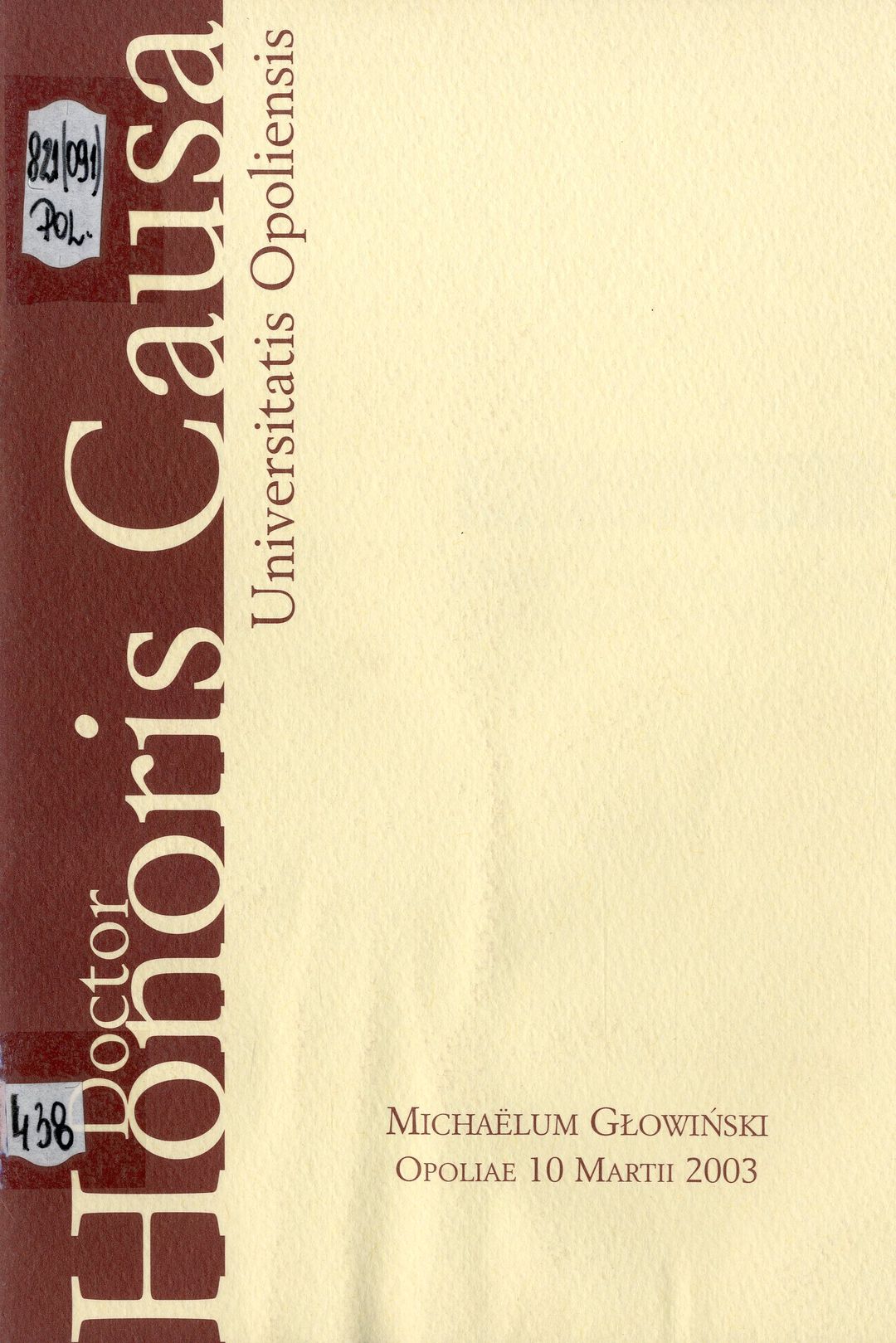 Doctor Honoris Causa Universitatis Opoliensis - Michaëlum Głowiński