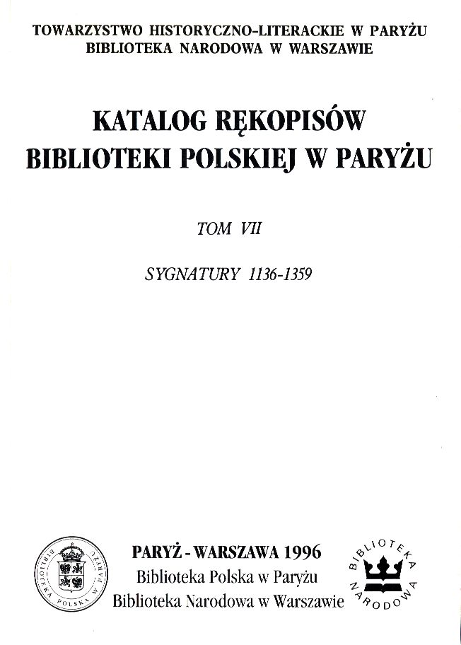 Katalog rękopisów Biblioteki Polskiej w Paryżu: Sygnatury 1136-1359