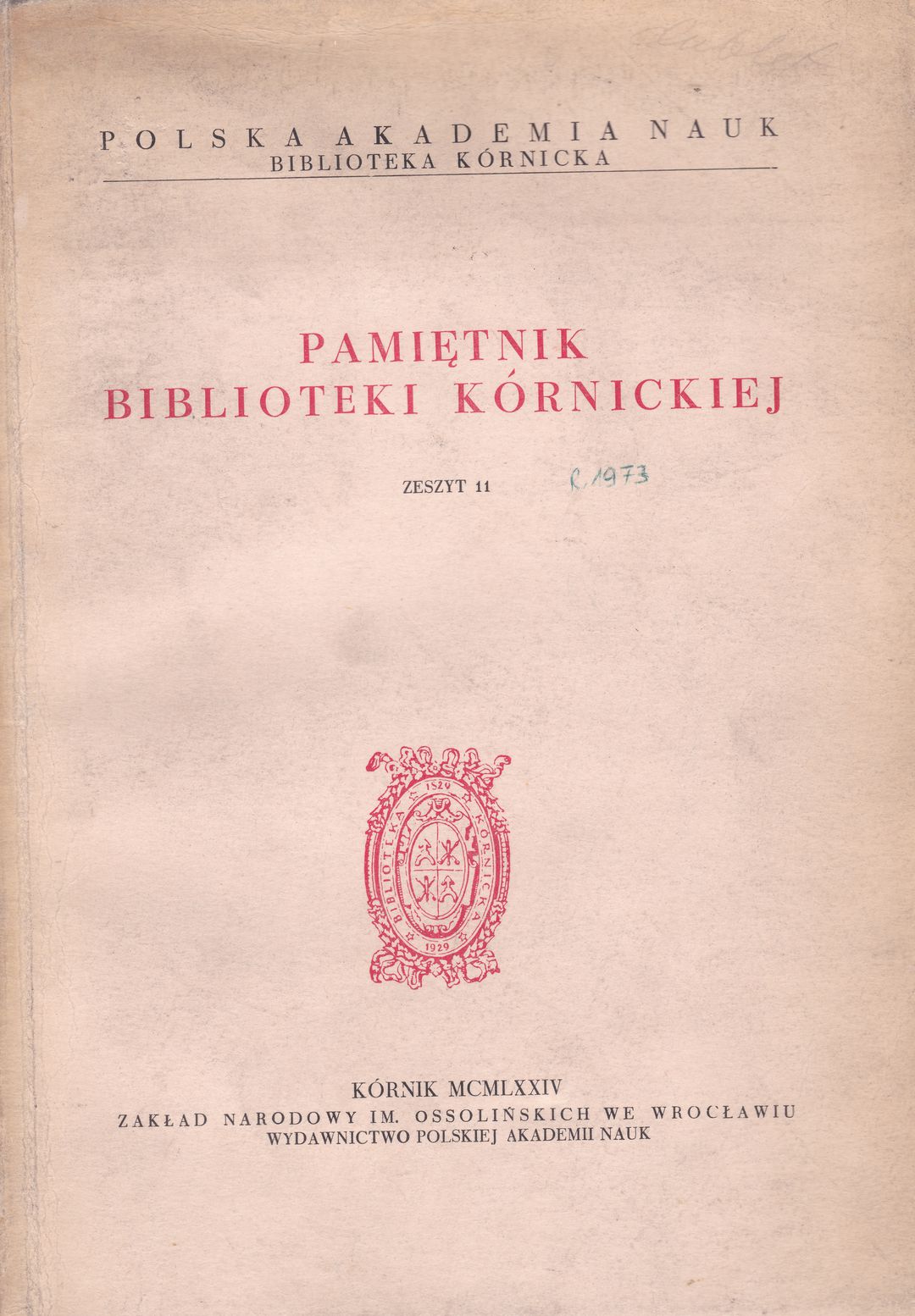 Zakład Narodowy im. Ossolińskich - Wydawnictwo (1974)