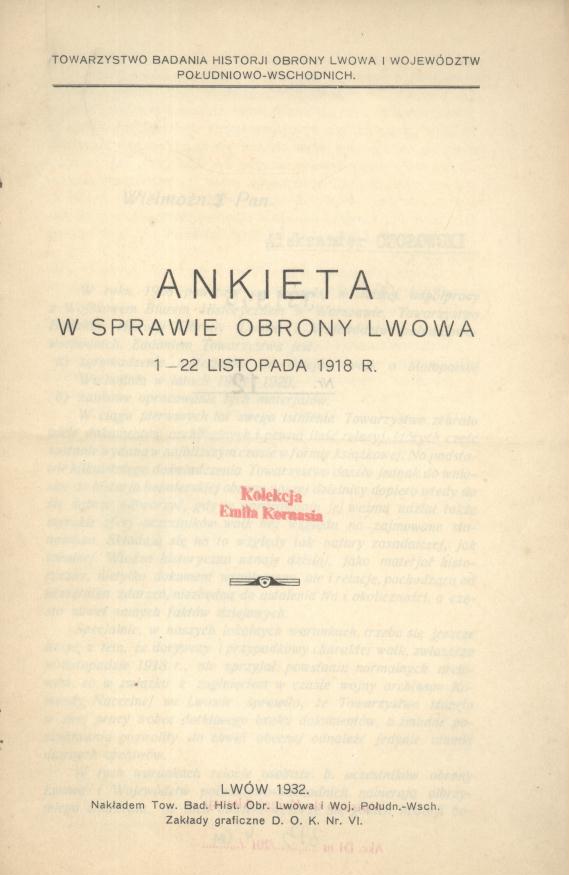Ankieta w sprawie obrony Lwowa 1-22 listopada 1918 r
