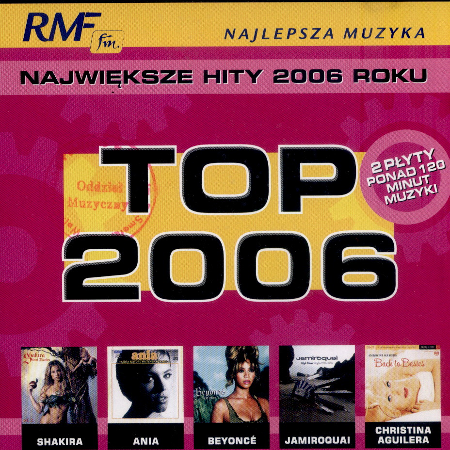| Inne tytuły: | Największe hity 2006 roku Hips Don't Lie Mas Que Nada Ain't No Other Man Baby Baby Just Be Good To Me Mixtura Potrafię kochać SOS Say Say Say Show Me Love Something About You Stars Are Blind Time To Pray Top 2006 CD 1 Trudno mi się przyznać Waiting 4 U Who Knew Wonderchild World, Hold On (Children Of The Sky) |