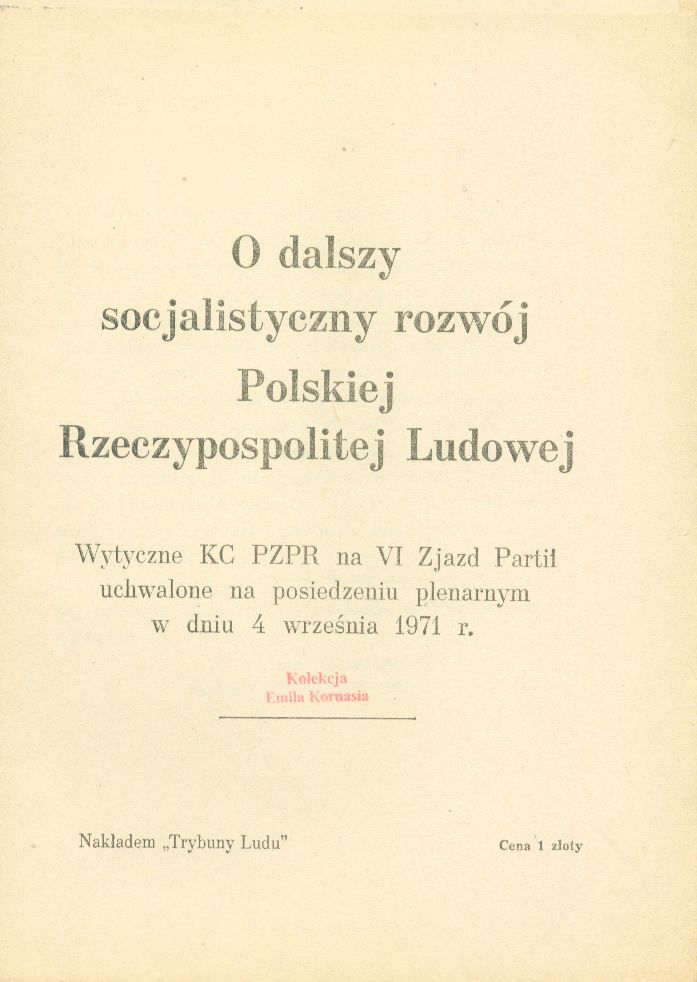 wytyczne KC PZPR na VI zjazd partii uchwalone na posiedzeniu plenarnym w dn. 4 września 1971 r