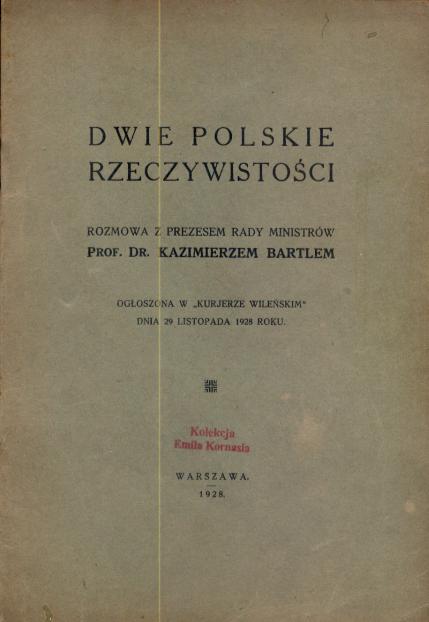 rozmowa z prezesem Rady Ministrów Kazimierzem Bartelem ogłoszona w "Kurjerze Wileńskim" dnia 29 listopada 1928 roku