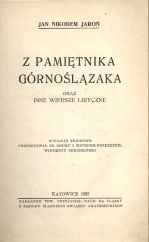 Z pamiętnika Górnoślązaka oraz inne wiersze liryczne:
