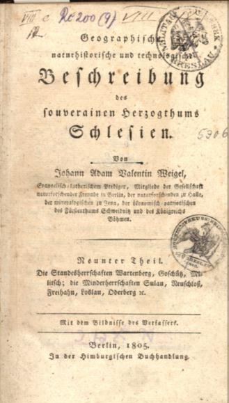 | Inne tytuły: | Geographische naturhistorische und technologische Beschreibung des souverainen Herzogthums Schlesien Tl.9. |