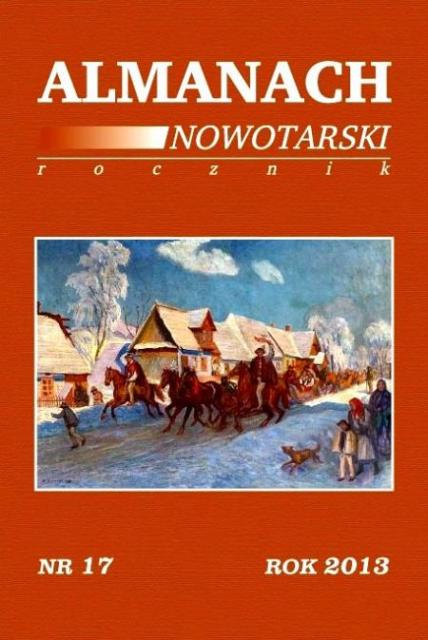 Spis treści. Od Redakcji. POEZJA - Wanda Szado-Kudasikowa - W Mieście, Krzysztof Kokot - Nie chodź sam na Samorody. AKTUALIA - Bogusław Pachniowski - Nowotarski Salon Poezji, Anna Szopińska - Sześć wieków pod płytą rynku. Z PRZESZŁOŚCI MIASTA - Grzegorz Zamoyski - Na przełomie epok. Nowy Targ i powiat nowotarski u progu autonomii galicyjskiej w świetle danych urzędowych, Lesław Dall - Żydowskie organizacje kombatanckie w Nowym Targu, Karolina Panz - Historia nowotarskiej rodziny Singerów, Dawid Golik - W służbie Kreishauptmanna - spisy urzędników zatrudnionych w nowotarskim starostwie powiatowym podczas okupacji niemieckiej, Marek Stanisław Fryźlewicz - 45-lecie pierwszego rejsu statku m/s "Podhale", Stanisław Gutt - 35-lecie Nowotarskiego Oddziału Polskiego Związku Hodowców Kanarków i Ptaków Egzotycznych. Z PRZESZŁOŚCI REGIONU - Andrzej Skorupa - Przywrócony blask zabytków z Polskiego Spisza, Andrzej Skorupa - Tomasz i Witt Nanke na Zamagurzu, Stanisław A. Hodorowicz, Maciej Hodorowicz - Rzecz o zbójnictwie w Tatrach skreślona przez Bronisława Gustawicza około 1880 roku, a z rękopisu odczytana, w części gwarowej poprawiona i dodruku przysposobiona przez Stanisława Hodorowicza i Macieja Hodorowicza, Robert Kowalski - Zapomniana wizyta Arcyksięcia Ferdynanda Rainera Habsburga w Pieninach i na Podhalu, Michał Rapta, Grzegorz Moskal - Partyzancka pamiątka, Kinga Kamila Lovell - Romowie w powiecie nowotarskim w latach 1952-1968 na podstawie relacji służb administracyjnych Polski Ludowej. NOVIFORIANA - Marek Stanisław Fryźlewicz - Kardynał Karol Wojtyła do Nowotarżan. MISCELLANEA - Ryszard M. Remiszewski - Zabytkowe wielkopostne opony z Orawki, Sylwia Bukowska - Dom wszystkich kapłanów, Michał Jabłoński - Zespół Elektrowni Wodnych Niedzica S.A. - zielona alternatywa. PAMIĘTNIKI, RELACJE, WSPOMNIENIA - Edmund Korngut - Historia mojego stuletniego życia, Phyllis Zych Budka - Wyjątkowy związek: Nowy Targ - Schenectady (USA) BIOGRAFIE, PORTRETY - Monika Waksmundzka-Hajnos - Stefan Banach1892-1945, Jacek Waksmundzki - Prawi synowie Podhala - ks. Leopold Bukowski i Józef Skubisz, Jacek Waksmundzki - Leopold Bednarczyk ps. Szpak - lekarz, społecznik, patriota, Jacek Waksmundzki - Major Józef Chlipała ps. "Lubański", Monika Waksmundzka-Hajnos, Mieczysław Hajnos - Władysław Hajnos (1912-1993). Wspomnienie w 100. rocznicę urodzin, Tadeusz Morawa - Tadeusz Morawa. Powojenne dzieje żołnierza AK, Franciszek Szlaga - Jan Rams - niestrudzony kościelny. KRONIKA NOWOTARSKA - Zofia Giełczyńska - Kronika miasta Nowego Targu. Rok 2012. LISTA NIEOBECNYCH - Irena Łukaszka - Pominęli się. RECENZJE - Bogusław Pachniowski - Kto ratuje jedno życie Jerzego Bieleckiego. Kilka nieśmiałych refleksji, Dorota Łajka - Wędrując przez Czerwone Morze, Zbigniew Moździerz - Nowe publikacje o kościołach w Nowym Targu. BIBLIOGRAFIA - Tomasz Borucki, Katarzyna Zwiercan-Borucka - Bibliografia Podhala, Spisza i Orawy za rok 2008, Marcin Jagła - Autorzy i artykuły "Almanachu Nowotarskiego" w latach 2007-2012.