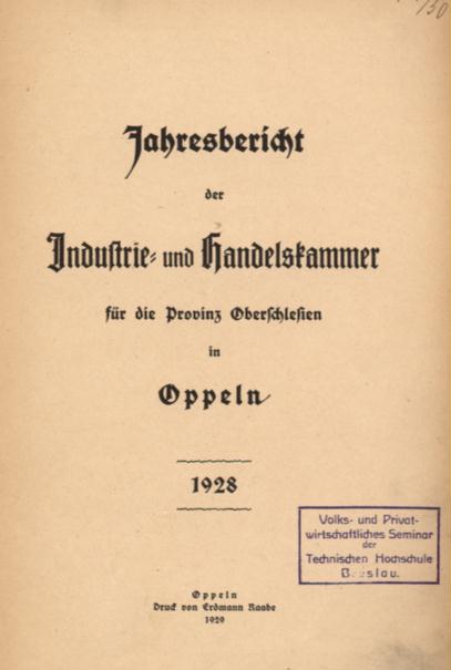 Jahresbericht der Industrie- und Handelskammer für die Provinz Oberschlesien in Oppeln 1928