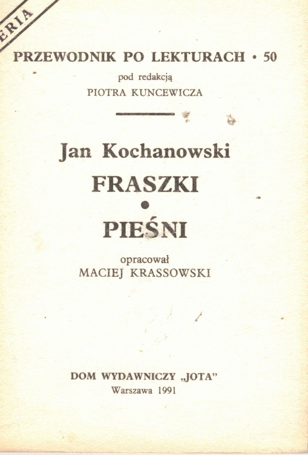 | Inne tytuły: | Jan Kochanowski - "Pieśni", "Fraszki", "Treny" |