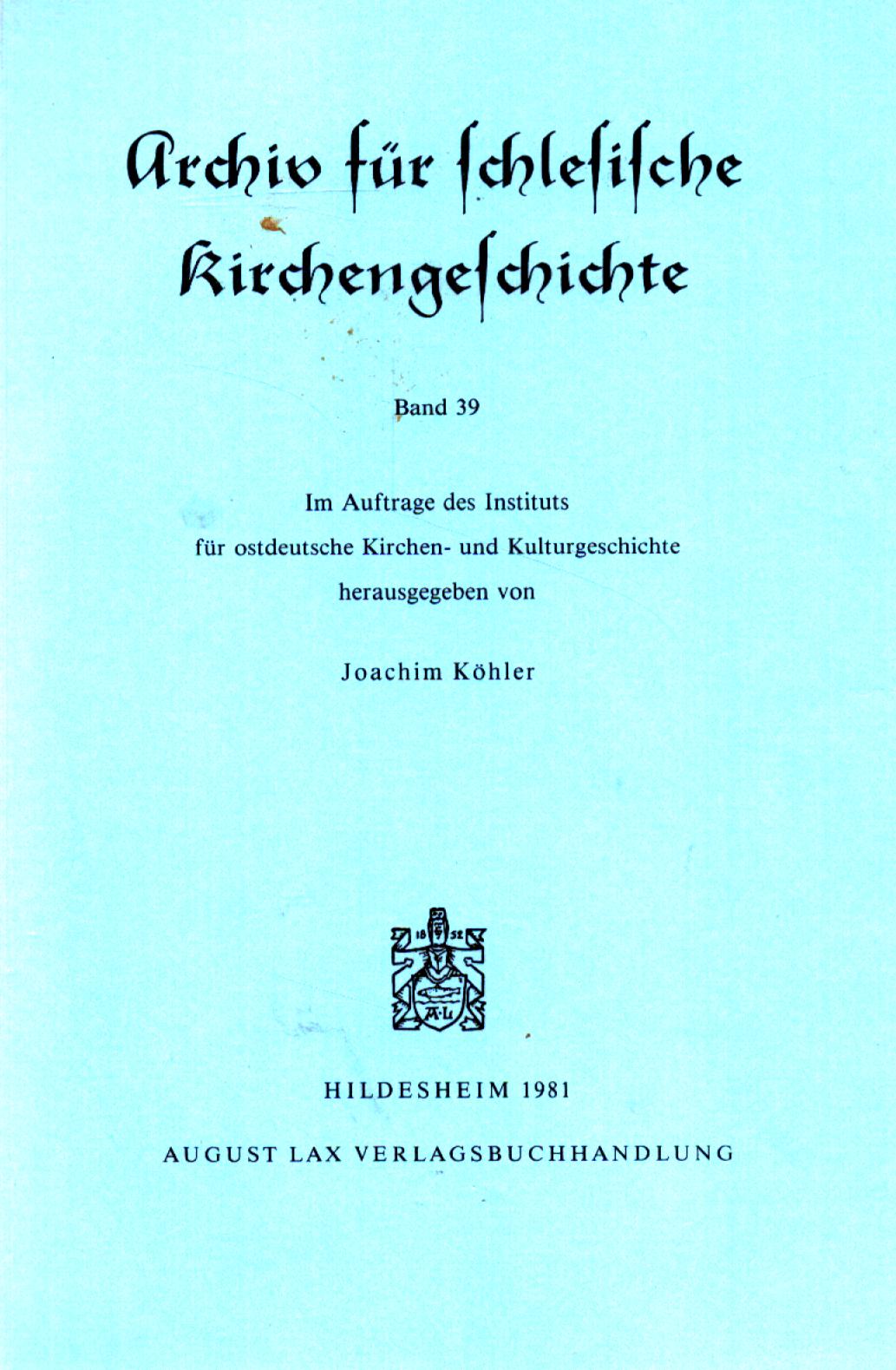 im Auftrage des Instituts für ostdeutsche Kirchen- und Kulturgeschichte herausgegeben von ...