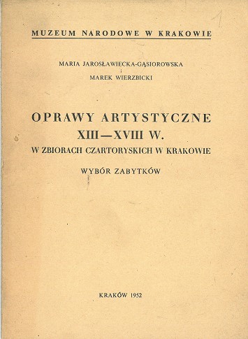 Oprawy artystyczne XIII-XVIII w. w zbiorach Czartoryskich w Krakowie: