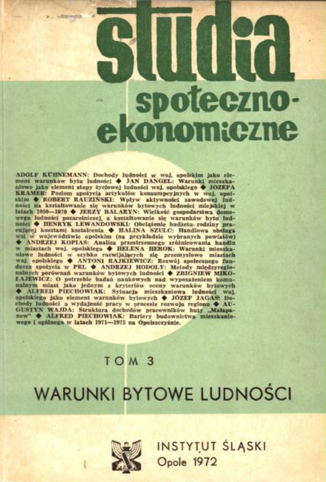 Materiały z konferencji naukowej Instytutu Śląskiego w Opolu nt. "Warunki bytowe ludności w województwie opolskim"