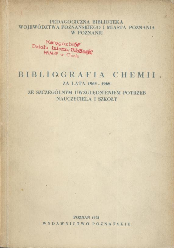 | Inne tytuły: | Bibliografia chemii Za lata 1965-1968 |