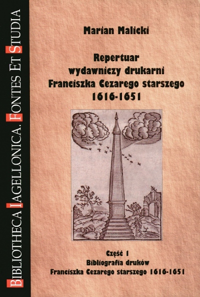 | Inne tytuły: | Repertuar wydawniczy drukarni Franciszka Cezarego starszego 1616-1651 Cz. 1, |