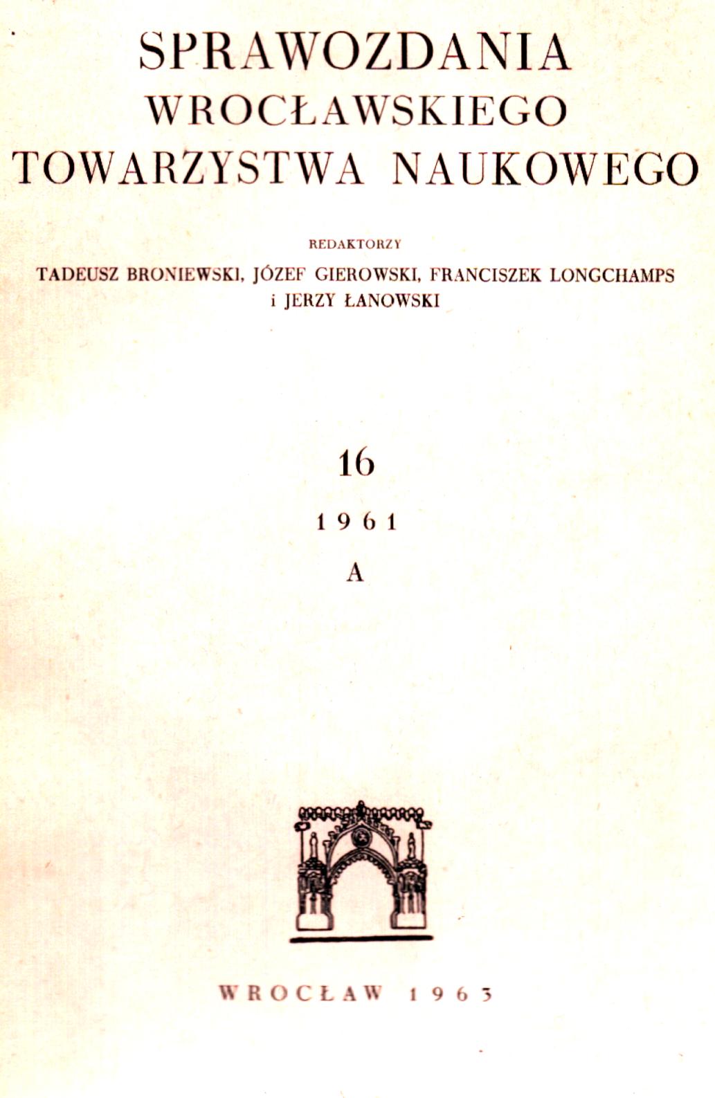| Inne tytuły: | Sprawozdania Wrocławskiego Towarzystwa Naukowego T.16 (1961) |