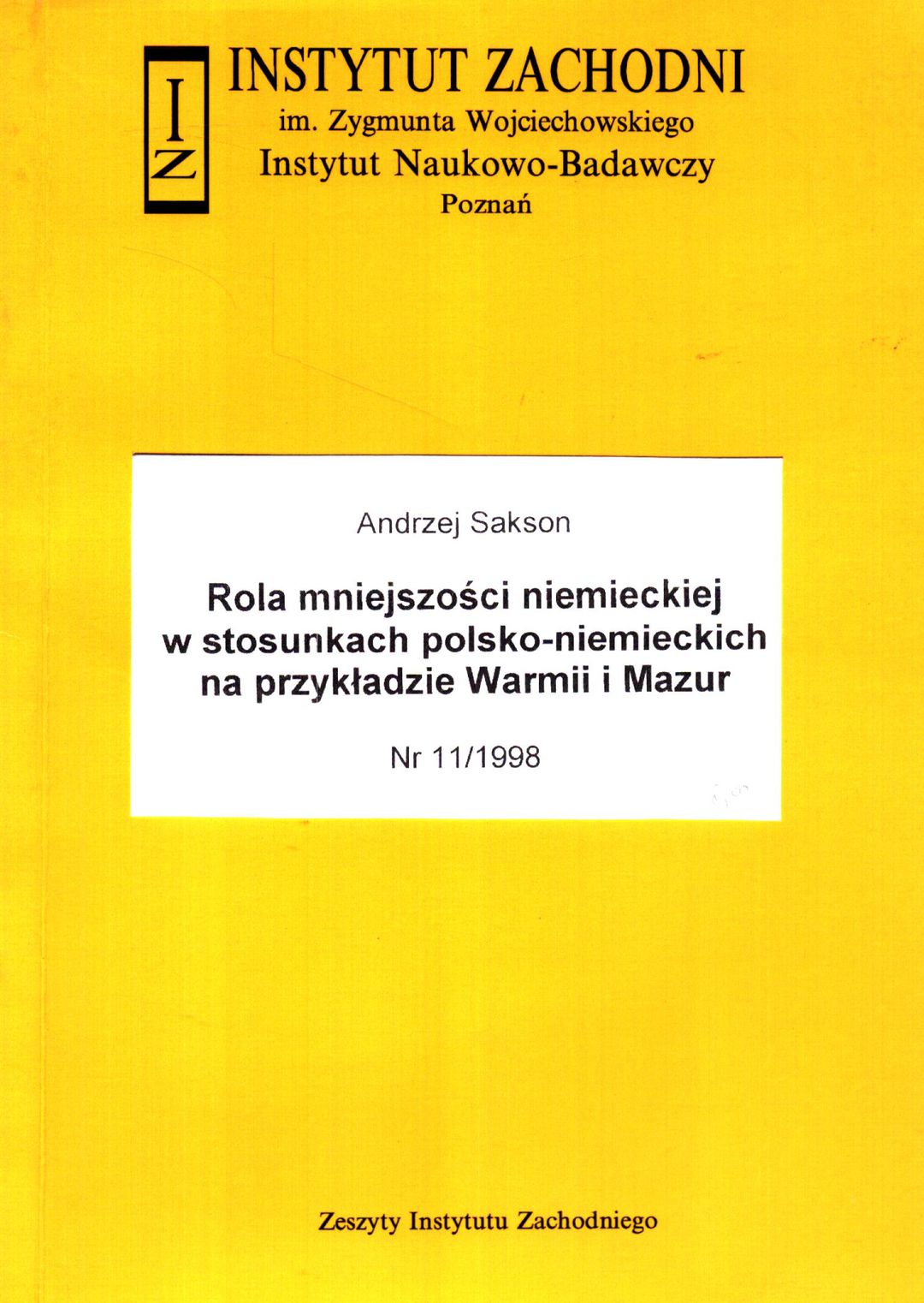 | Instytucja sprawcza: | Instytut Zachodni - Instytut Naukowo-Badawczy im. Zygmunta Wojciechowskiego w Poznaniu |