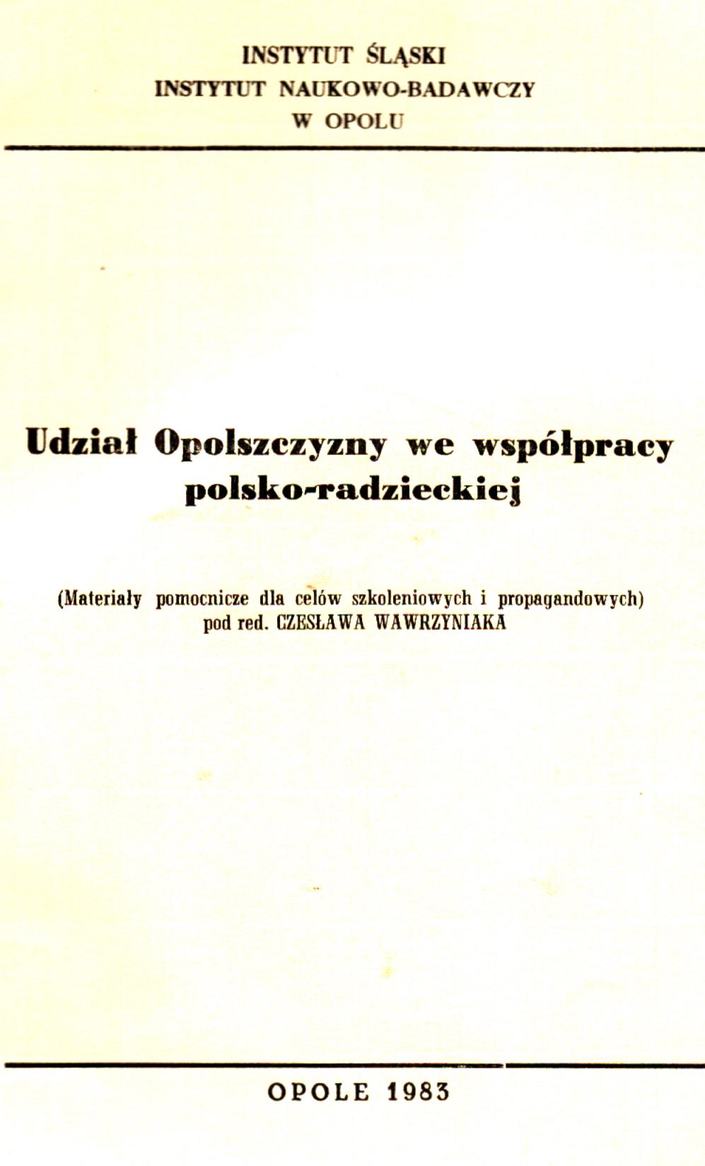 Udział Opolszczyzny we współpracy polsko-radzieckiej: