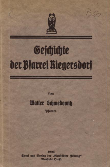Geschichte der Pfarrei Riegersdorf Kreis Neustadt OS