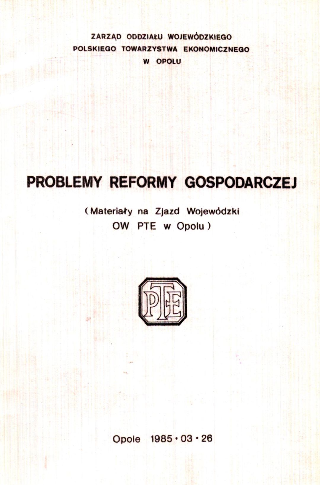 (materiały na Zjazd Wojewódzki OW PTE w Opolu), Opole, 1985. 03. 26