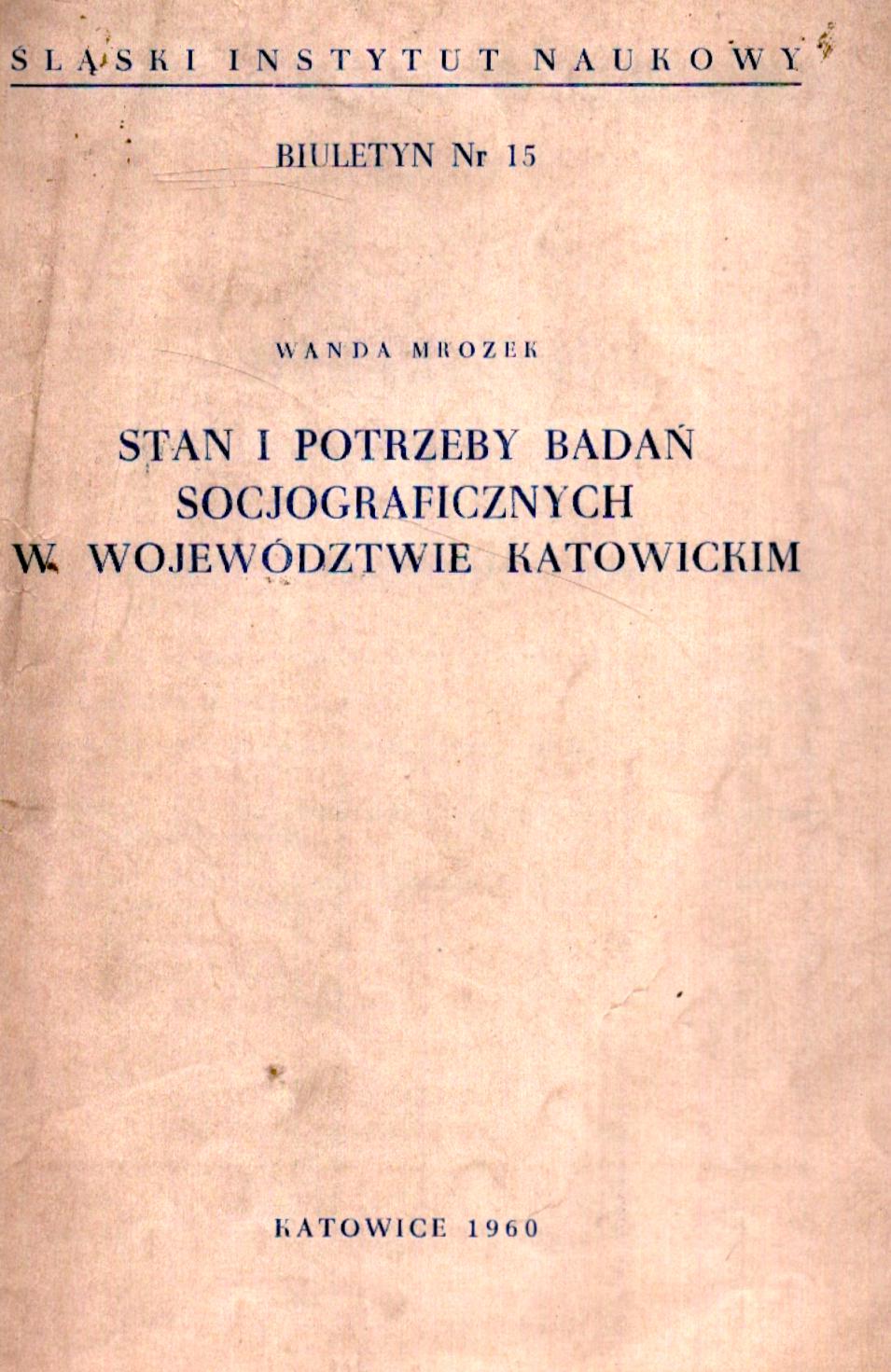 Stan i potrzeby badań socjograficznych w województwie katowickim