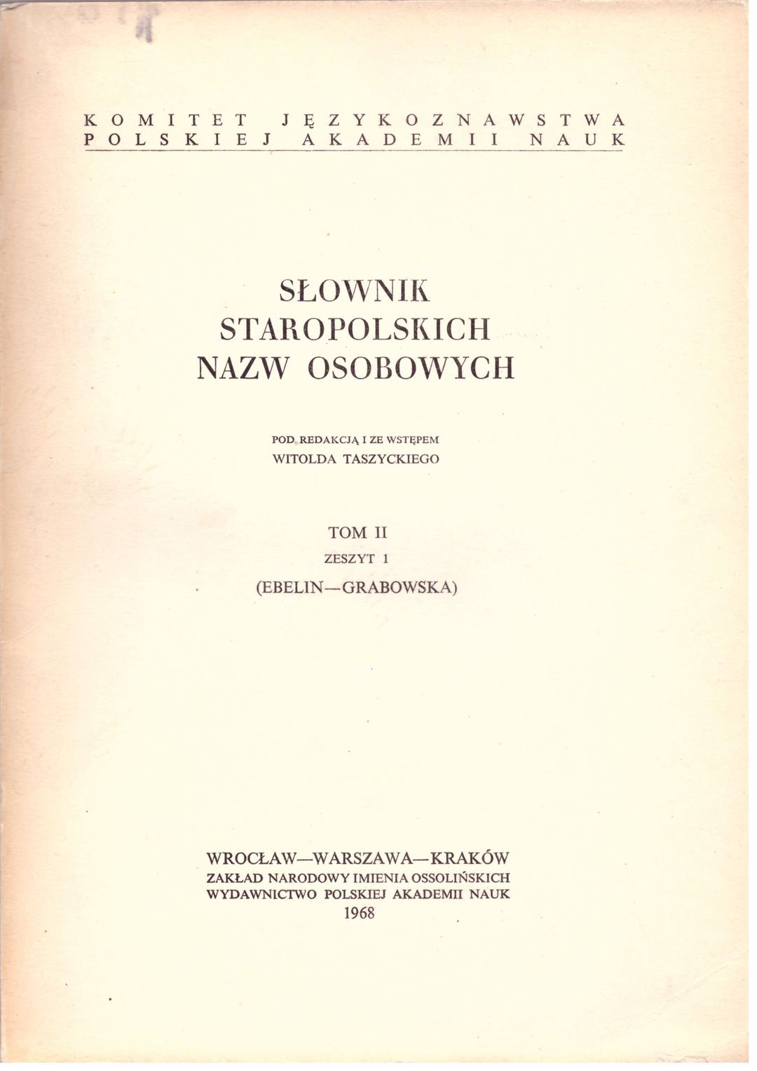 Słownik staropolskich nazw osobowych: (Ebelin-Grabowska)
