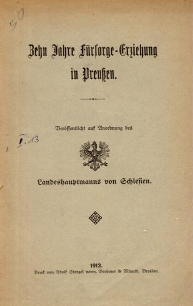Zehn Jahre Fürsorge-Erziehung in Preussen: