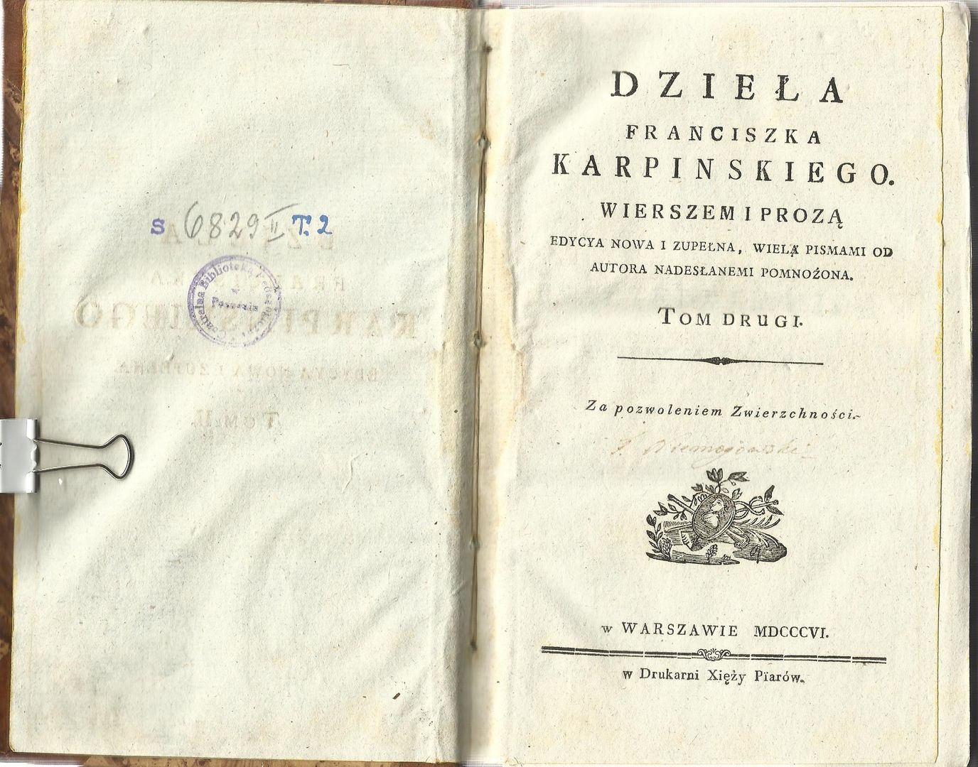 | Wydawcy: | Breitkopf Haertel (1835) u W. B. Korna (1826) Drukarnia Xięży Piarów (1806) w Drukarni Xięży Piarów (1806) Franciszek Ksawery Dmochowski Drukarnia Pijarów |