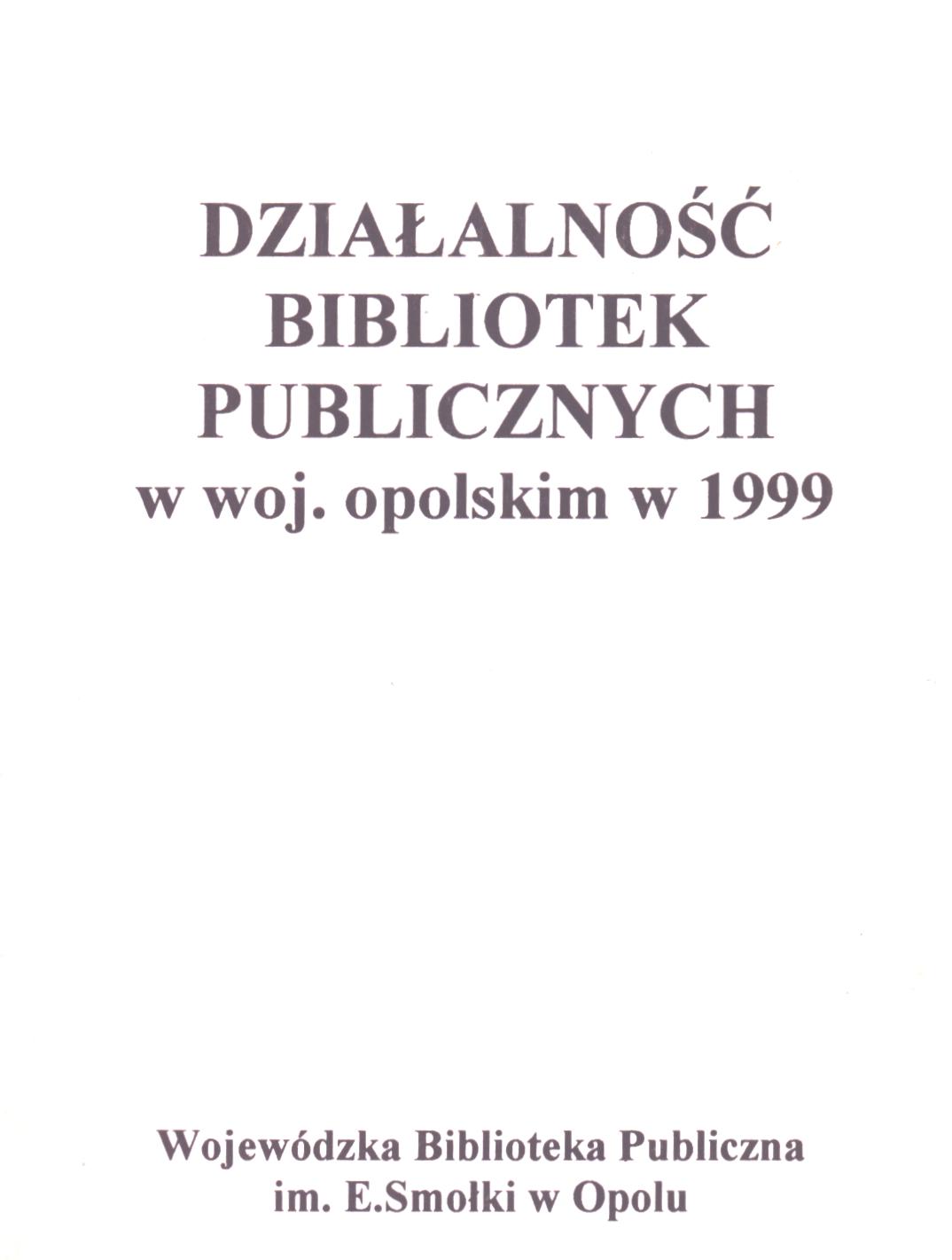 | Inne tytuły: | Działalność bibliotek publicznych w województwie opolskim 1999 |