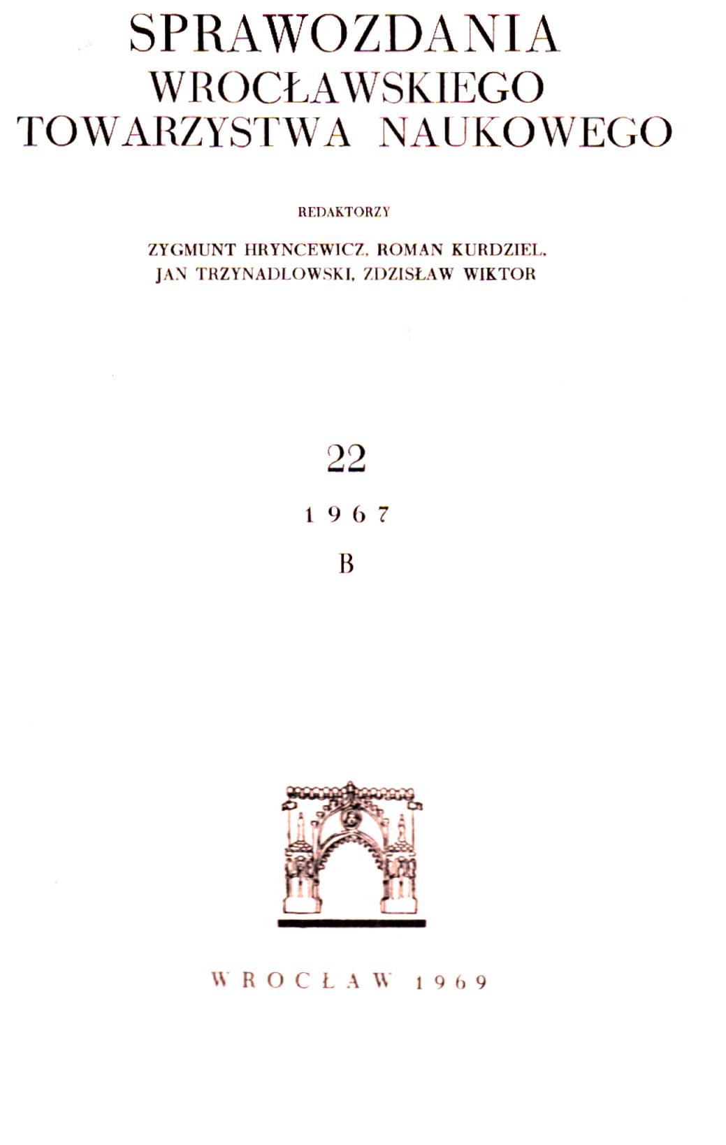 | Inne tytuły: | Sprawozdania Wrocławskiego Towarzystwa Naukowego T.22 (1967) |