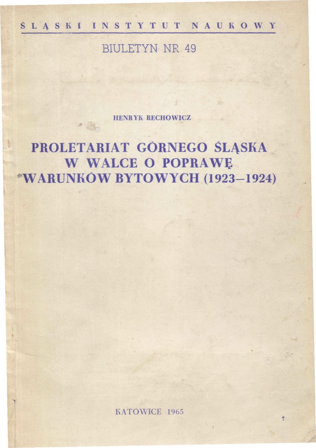 Proletariat Górnego Śląska w walce o poprawę warunków bytowych (1923-1924)