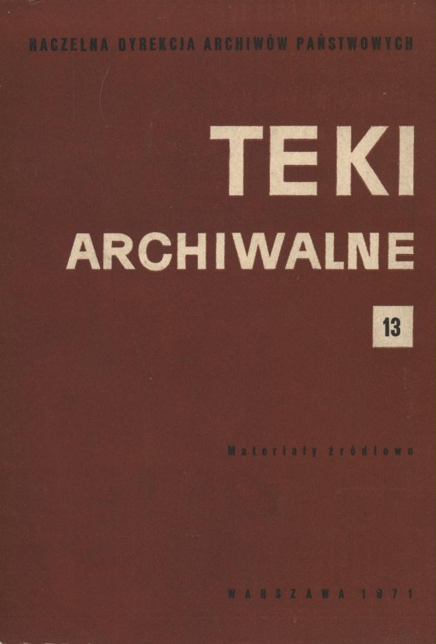 | Inne tytuły: | Materiały źródłowe Teki Archiwalne 13, |