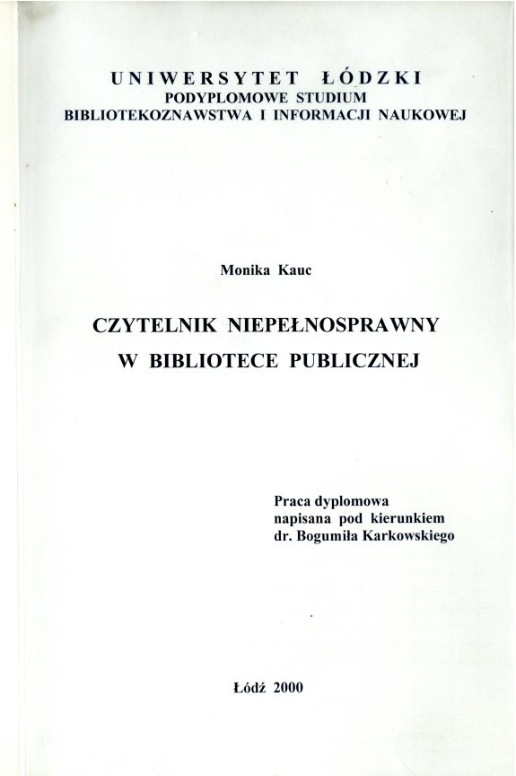 Czytelnik niepełnosprawny w bibliotece publicznej:
