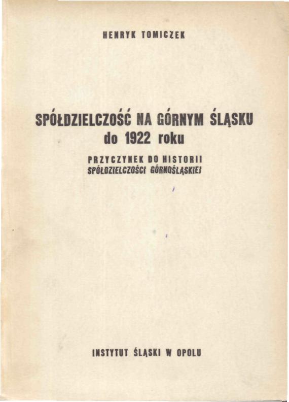 Komunikaty: Spółdzielczość na Górnym Śląsku do 1922 roku: