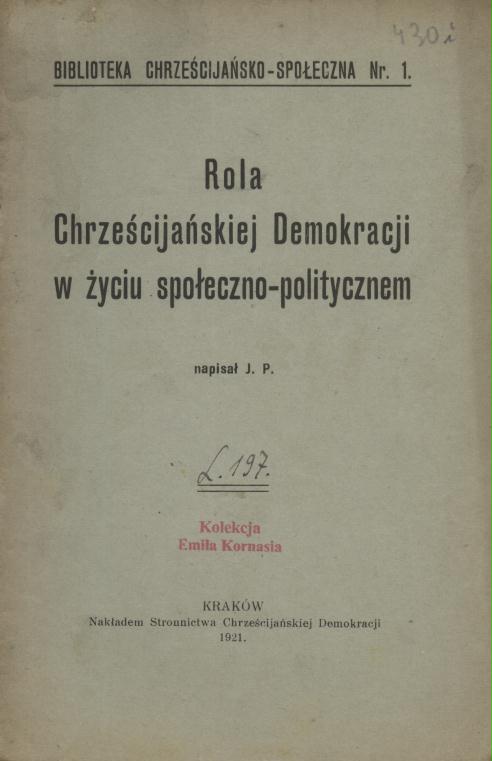 Rola Chrześcijańskiej Demokracji w życiu społeczno-politycznem