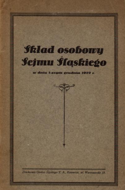Skład osobowy Sejmu Śląskiego w dniu 1-szym grudnia 1922 r