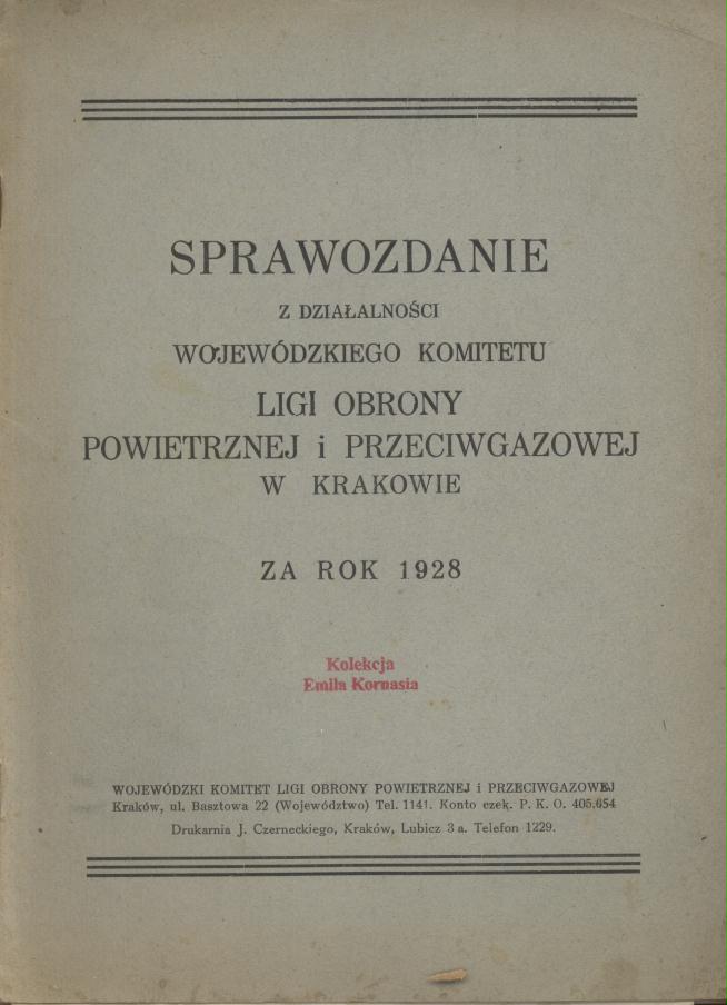 Sprawozdanie z działalności Wojewódzkiego Komitetu Ligi Obrony Powietrznej i Przeciwgazowej w Krakowie za rok 1928