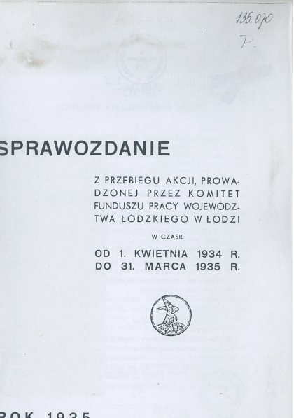 Sprawozdanie z przebiegu akcji, prowadzonej przez Komitet Funduszu Pracy Województwa Łódzkiego w Łodzi w czasie od 1 kwietnia 1934 r. do 31 marca 1935 r