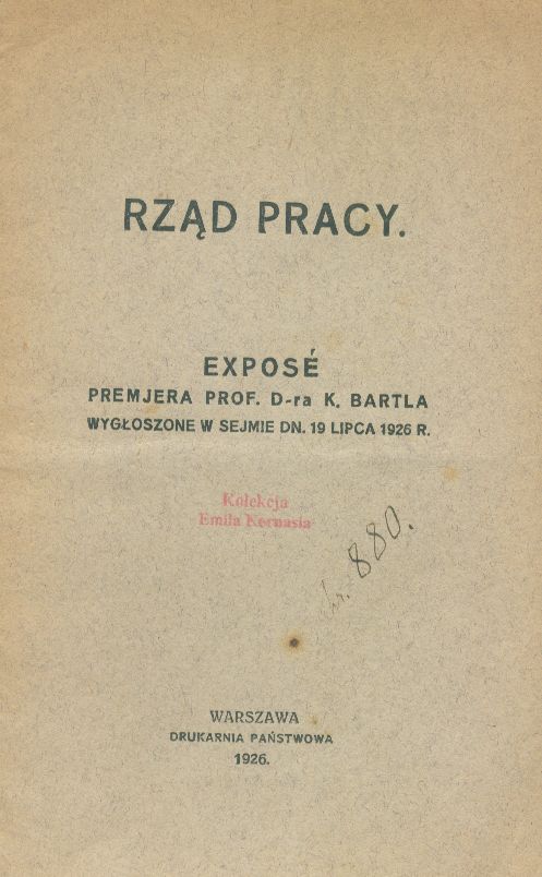 exposé premjera K. Bartla wygłoszone w Sejmie dn. 19 lipca 1926 r